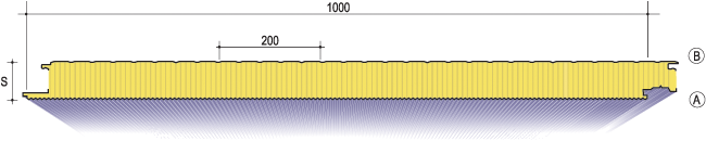 realizzato mediante uno strato di coibente di speciale configurazione, in fibre minerali ad alta densità (λ = 0,040 W/mK), disposte perpendicolarmente al piano delle lamiere.
