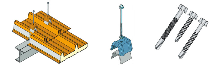 Il sistema è costituito da una vite autofilettante con rondella cava incorporata, cappellotto, guarnizione in neoprene e vipla.